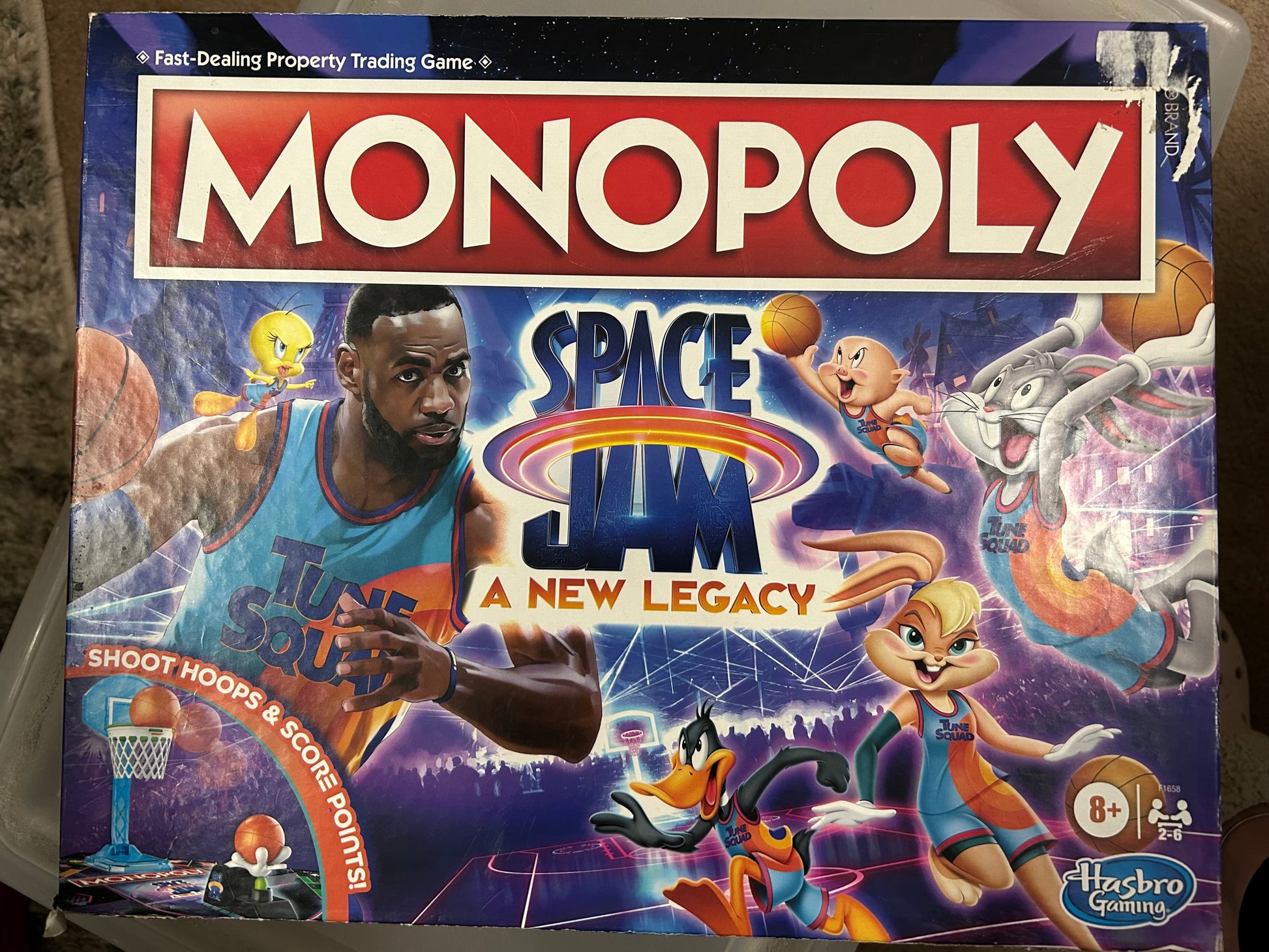 INCOMPLETE Monopoly: Space Jam: A New Legacy Edition Family Board Game, Lebron James Space Jam 2