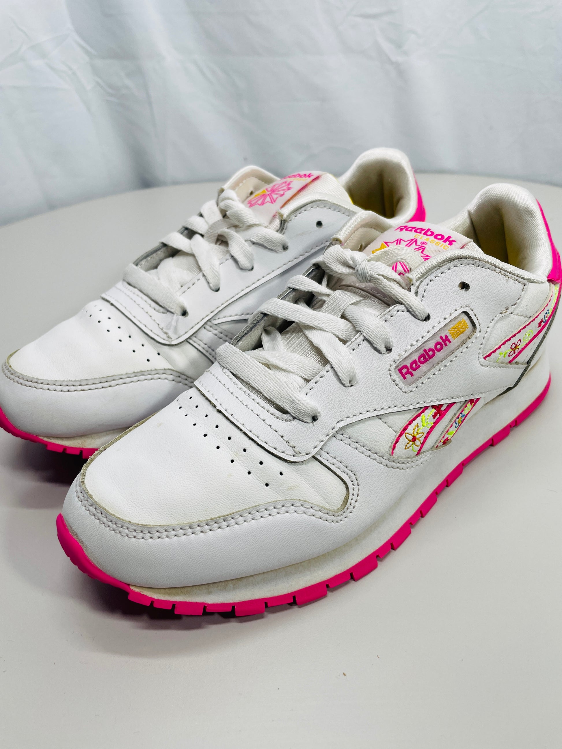 Reebok Classic Running Sneaker White & Pink with Pink Flowers Girls USA 3