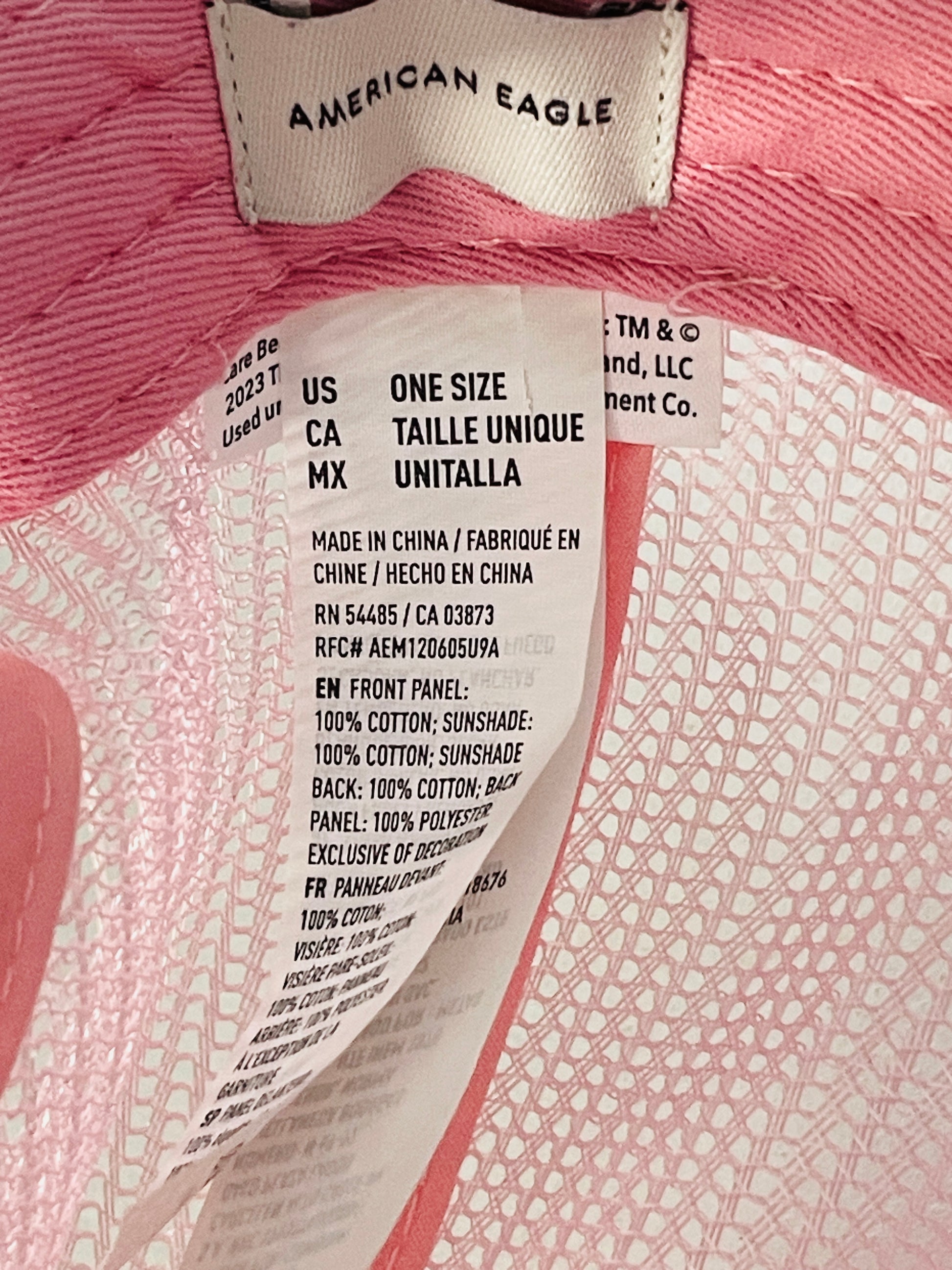 American Eagle Carebears Trucker Hat Ball Cap Pink Corduroy Snap Back One Size Lt Wear