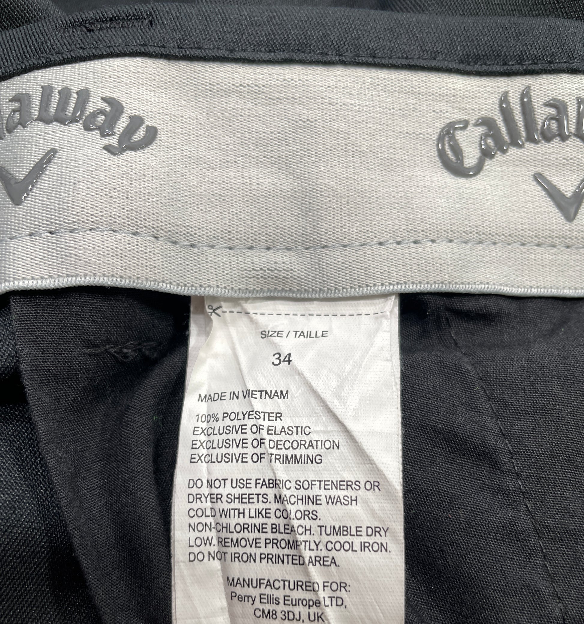 Calloway Golf Shorts Charcoal Black Mens 34