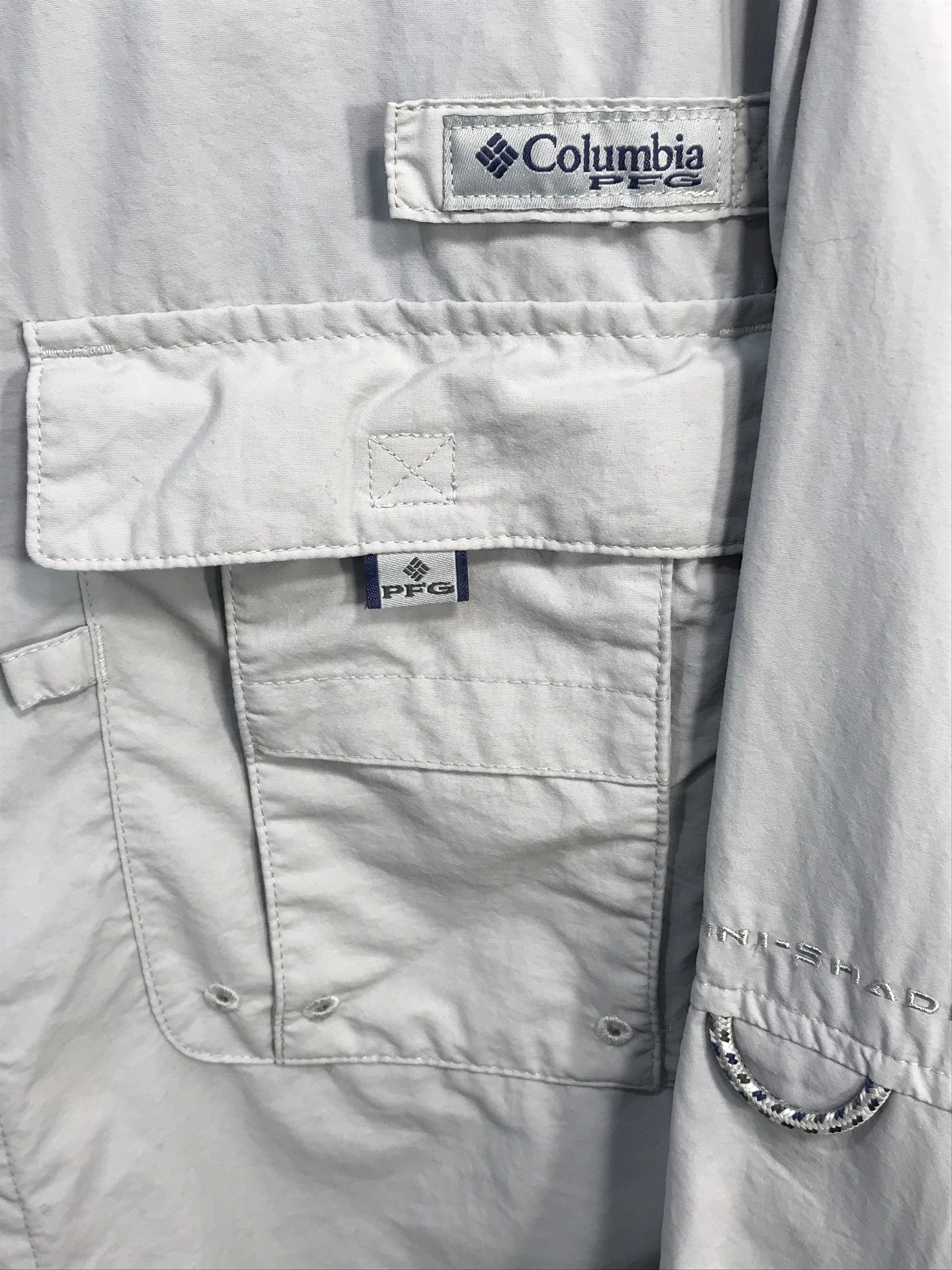 Columbia PFG Bahama Omin-Shade Long Sleeve Lt Gray Mens M PEN MARK ON BACK