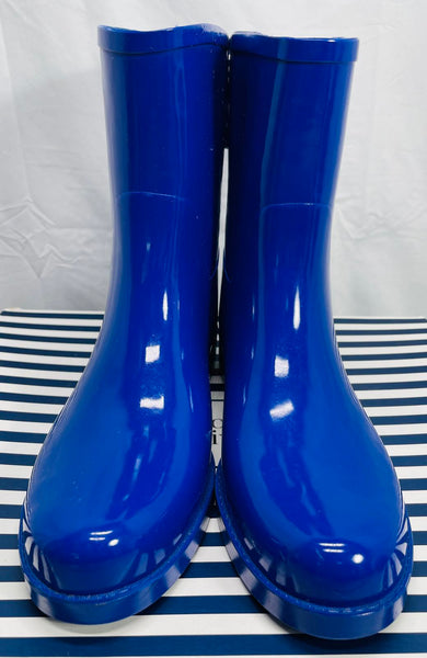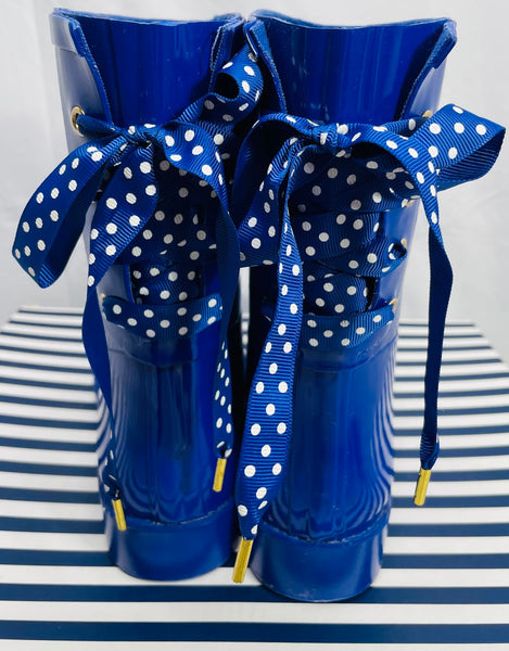 Crown & Ivy Gloss Blue Rubber Rain Boots with Polka Dot Ties LT WEAR Womens 8M