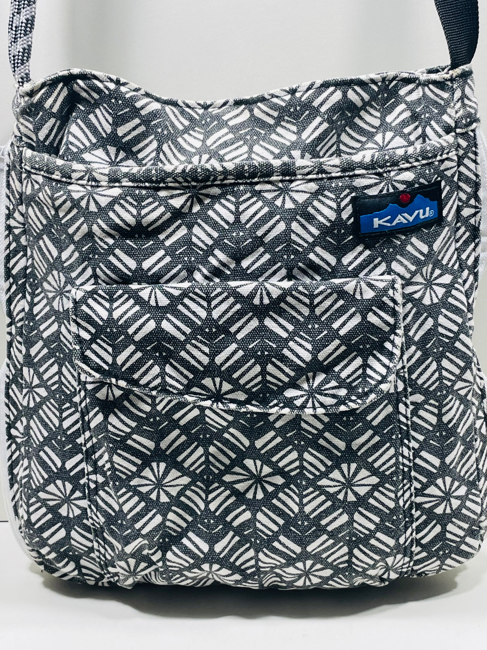 EUC! Kavu Crossbody Purse Canvas Black & White 11"