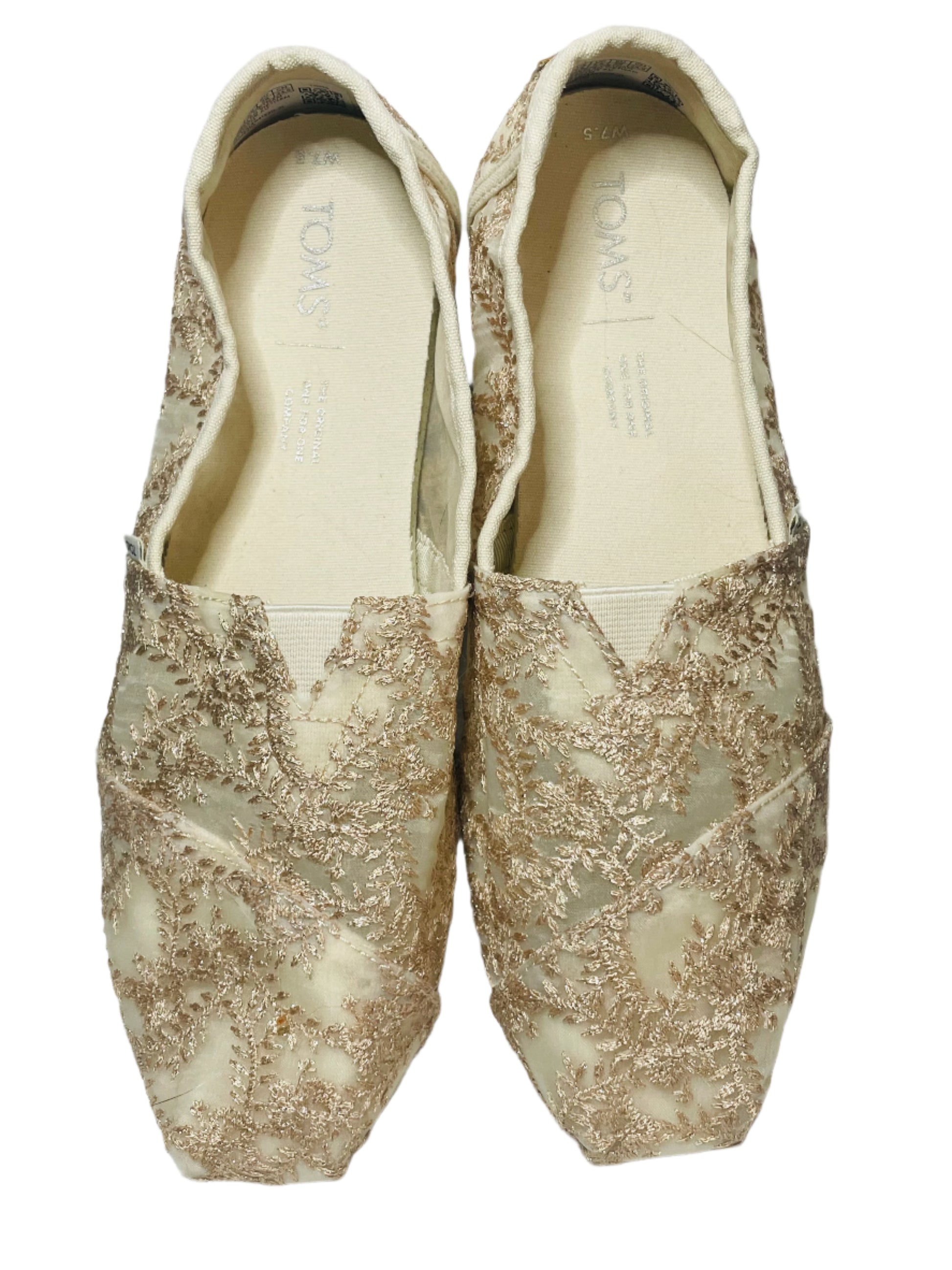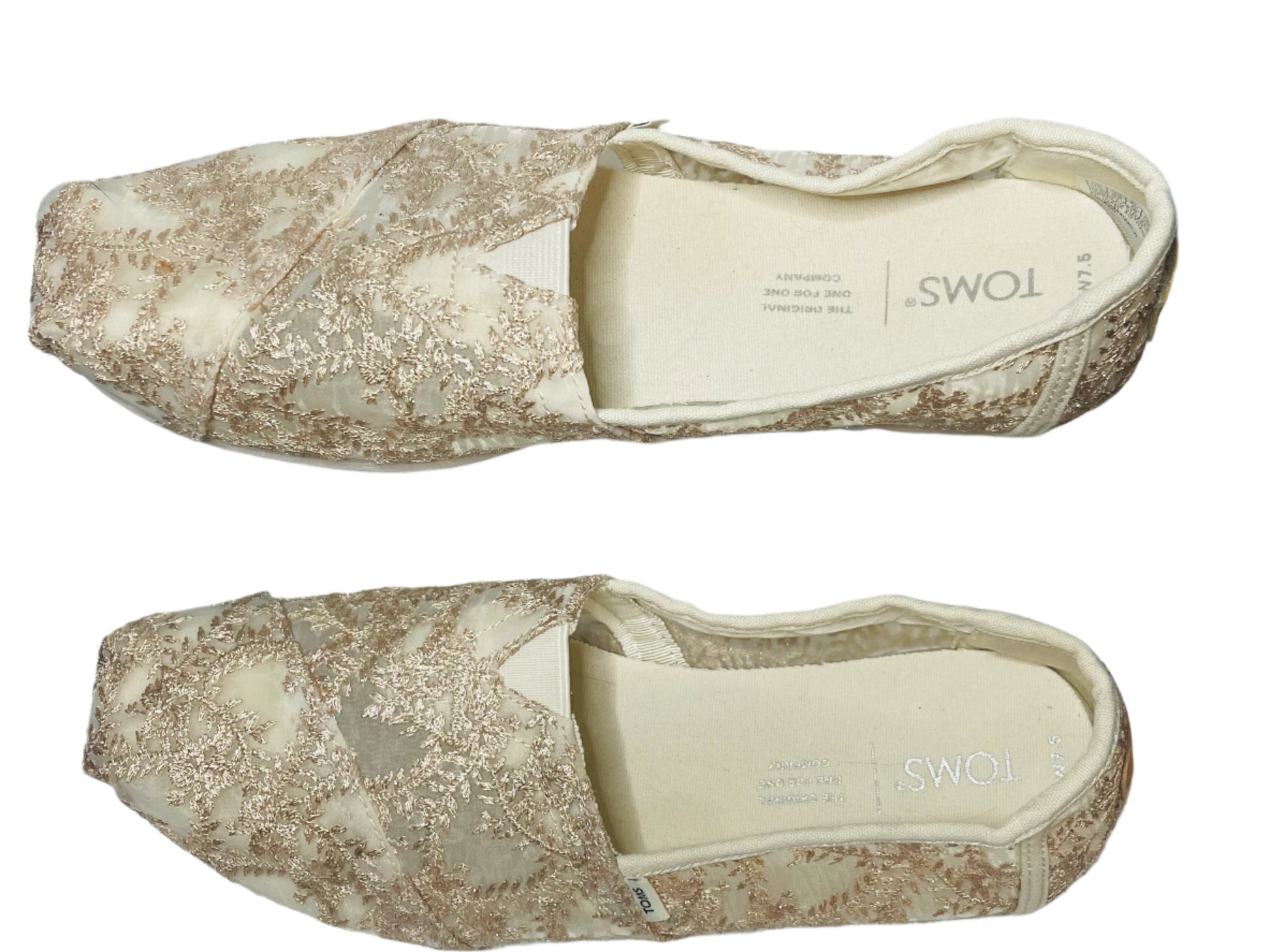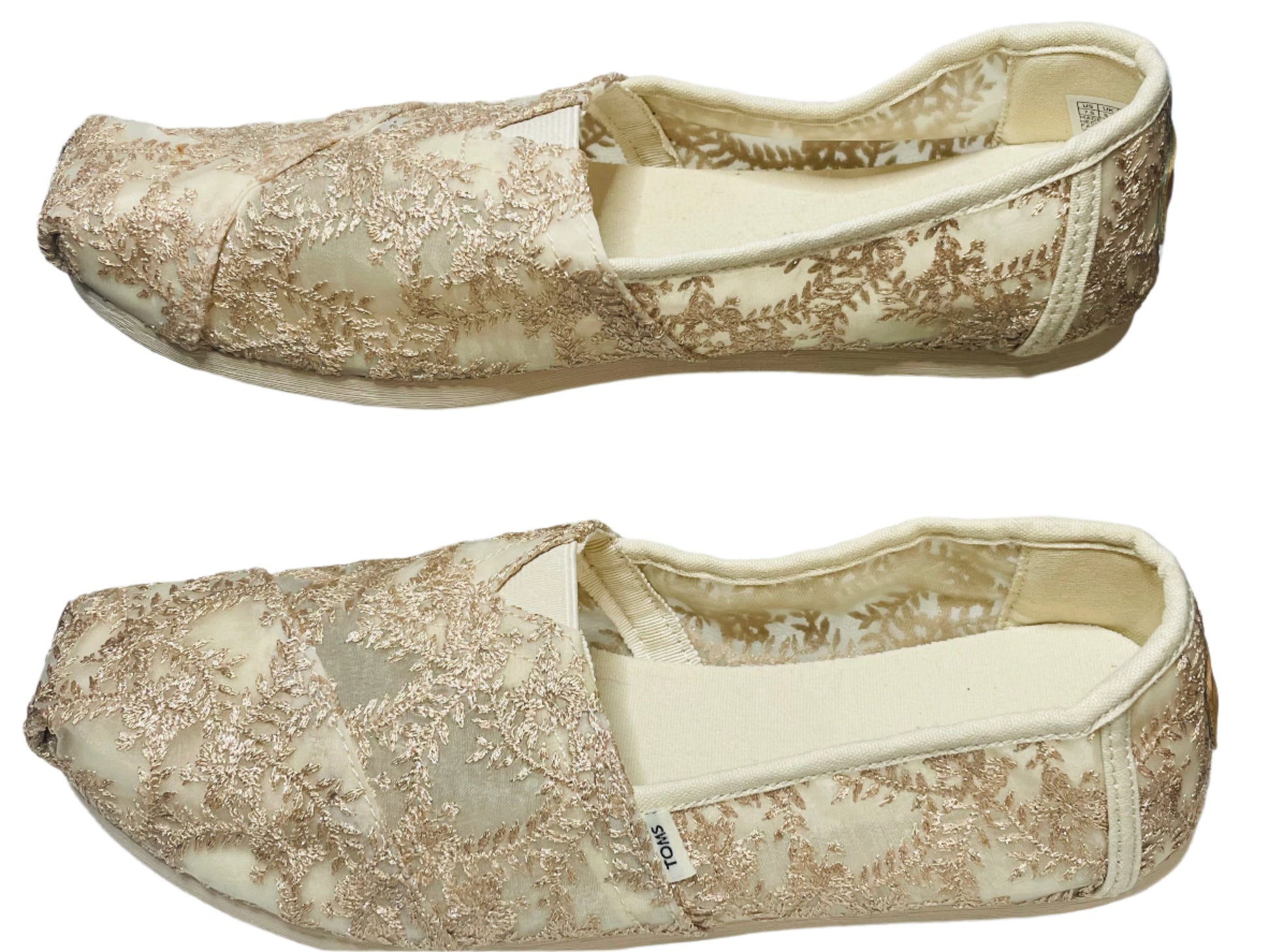 EUC Toms Slip Ons Wedding Lace Ivory Cream Womens US 7.5 Freshy Laundered