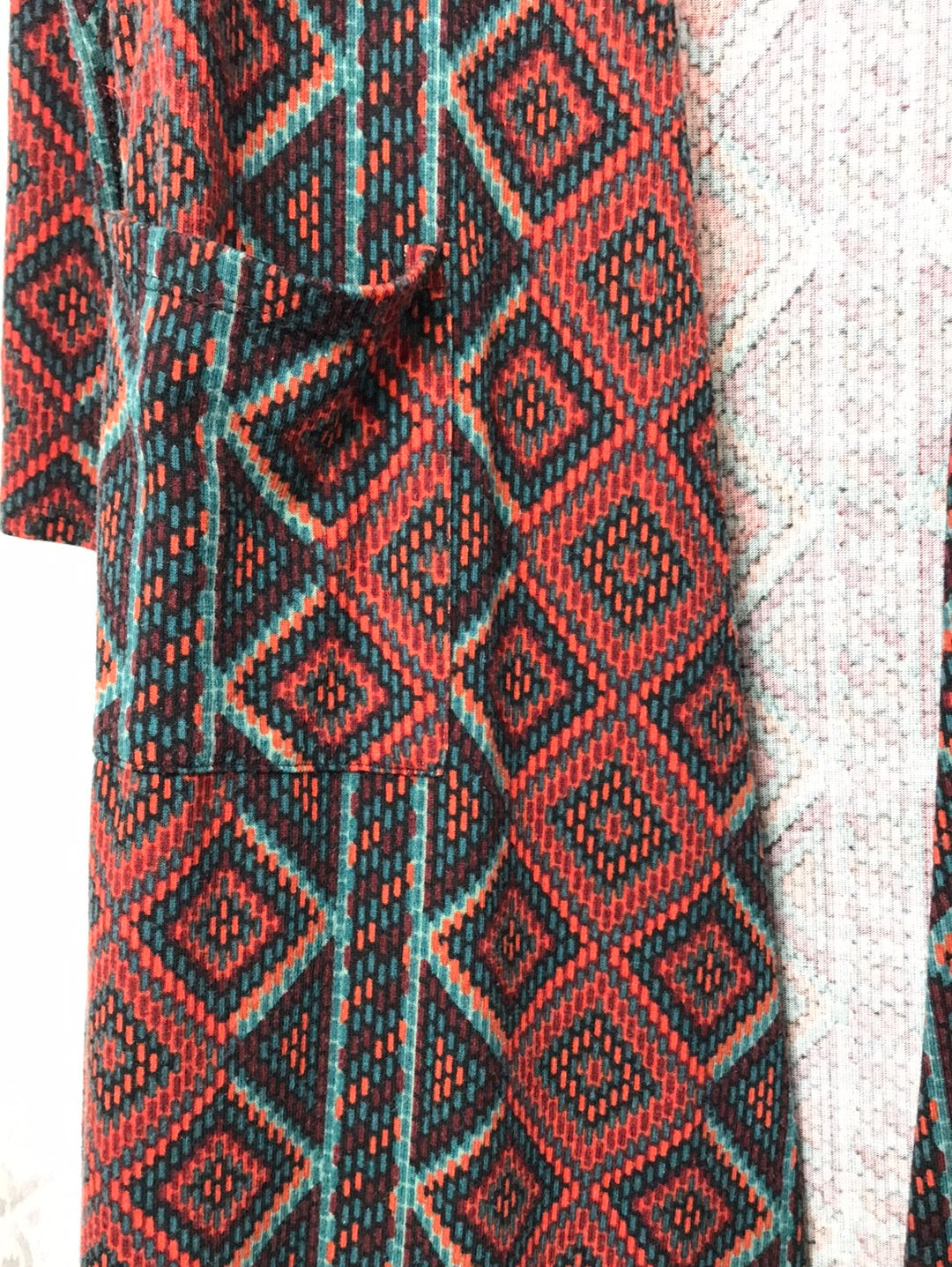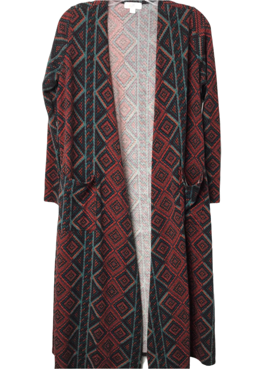 Lularoe Long Outerwear Cardigan Red Green Diamonds Ladies S