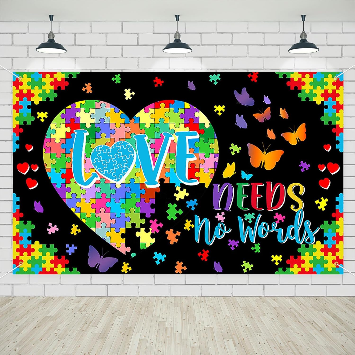 NEW! Autism Awareness Set: Large Backdrop Banner 70.8" x 43.3" + 96 pcs Enamel Pins