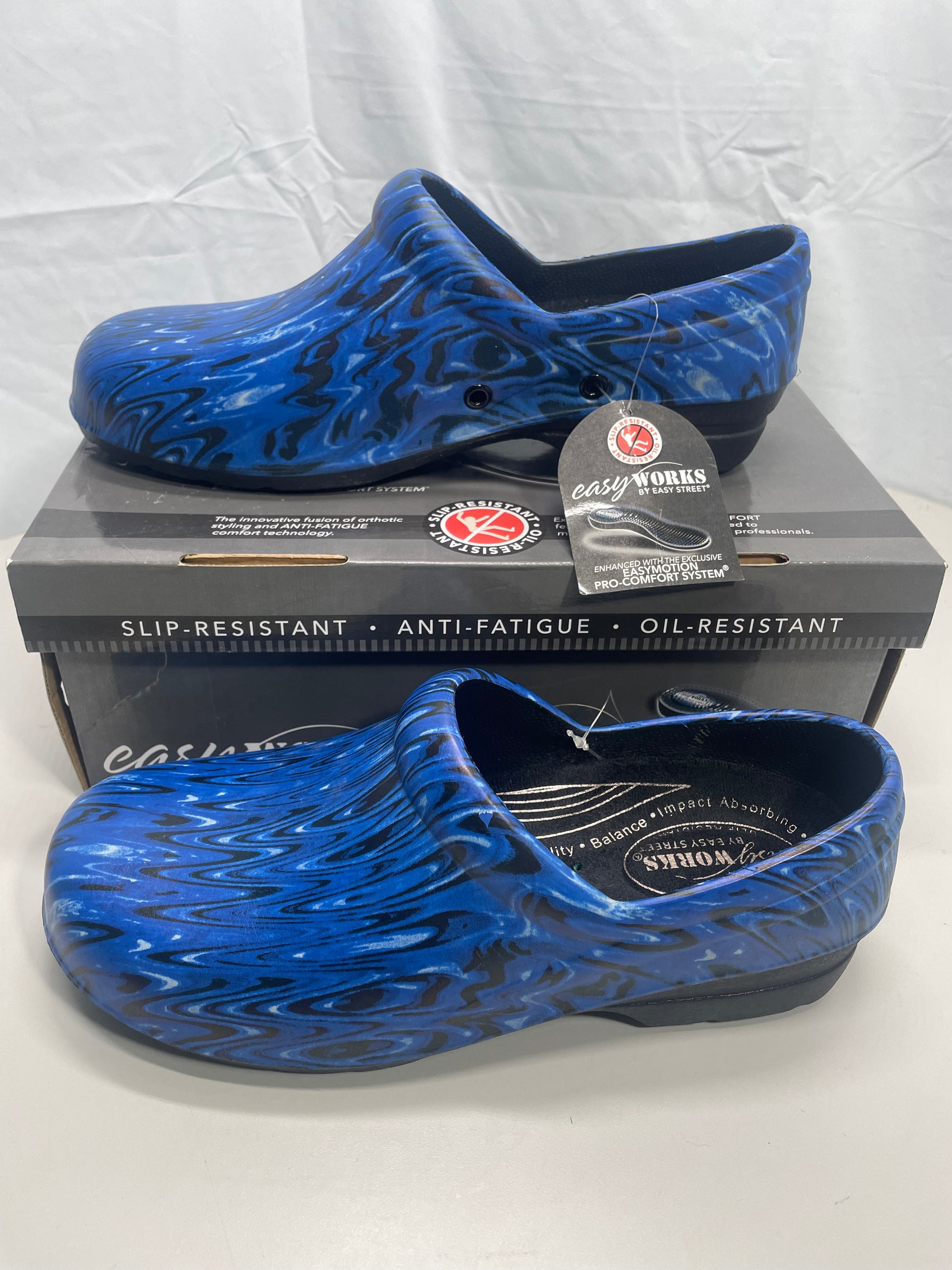 NIB! Easy Works by Easy Street Kris Navy Ripple Clogs Ladies 10