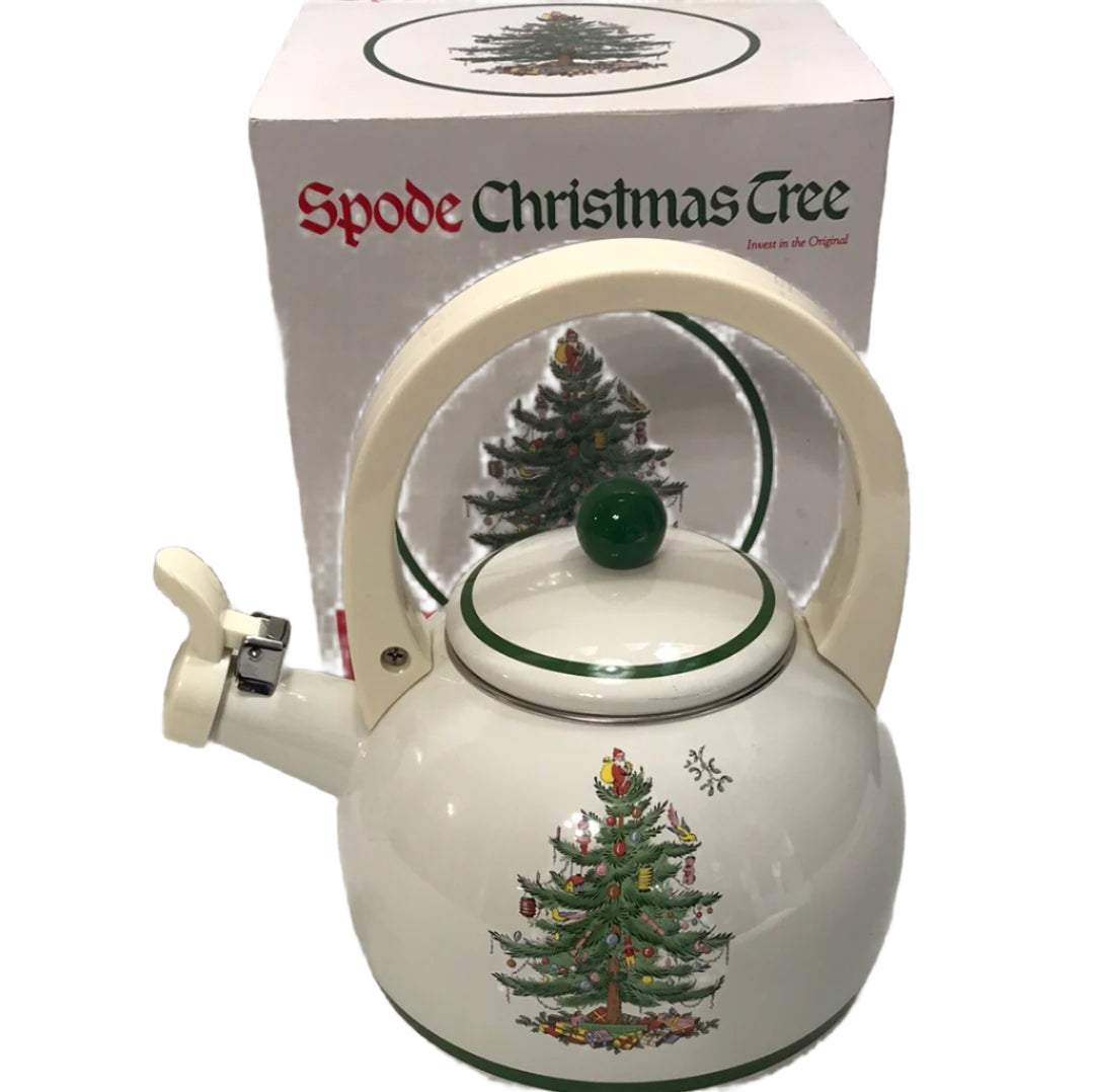 NIB Spode Christmas Tree Whistling Tea Kettle DAMAGED BOX