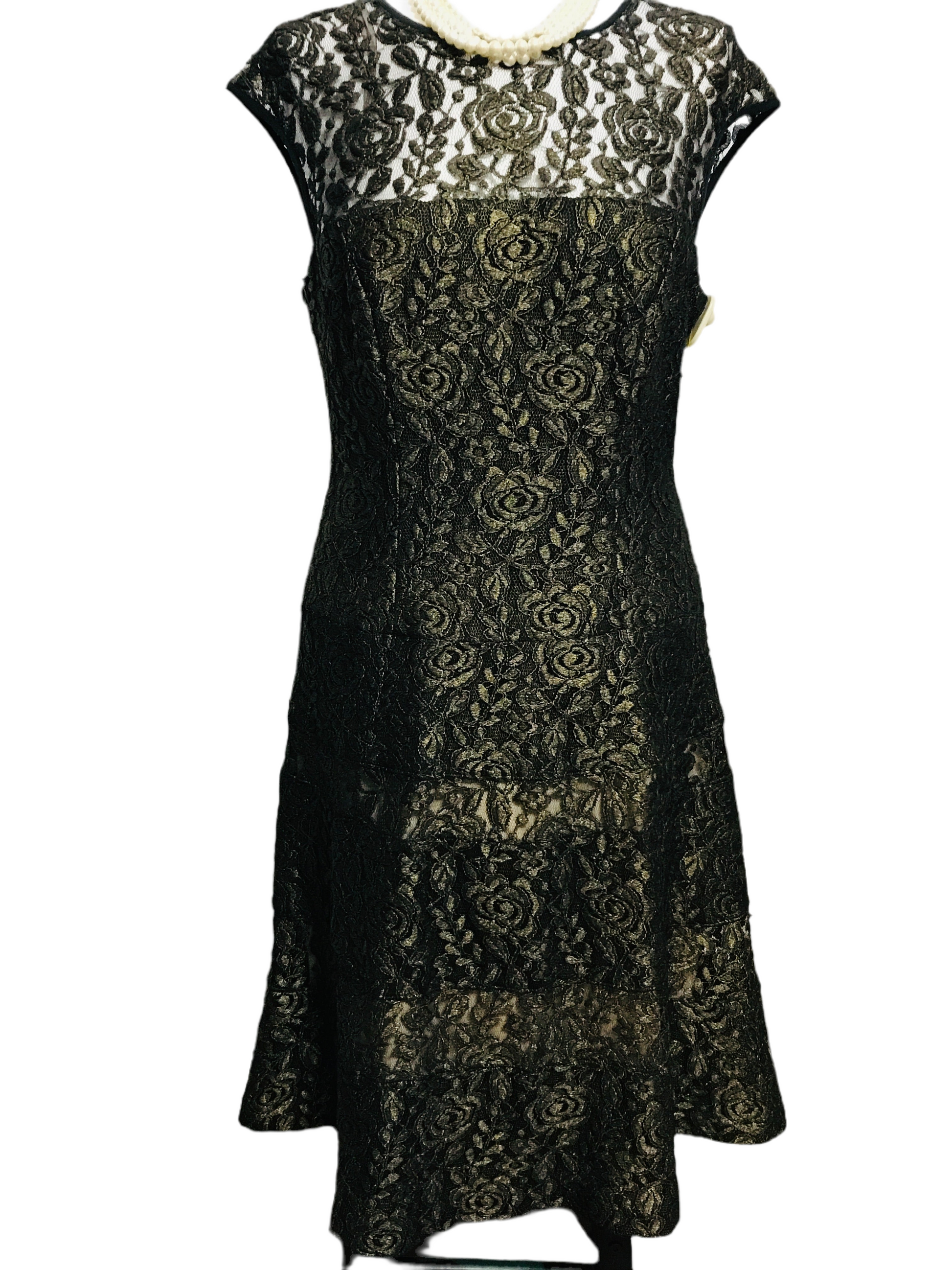 NWT Maggy London Bridesmaid/Prom/Ball Dress Black & Gold Floral Lace Ladies 10
