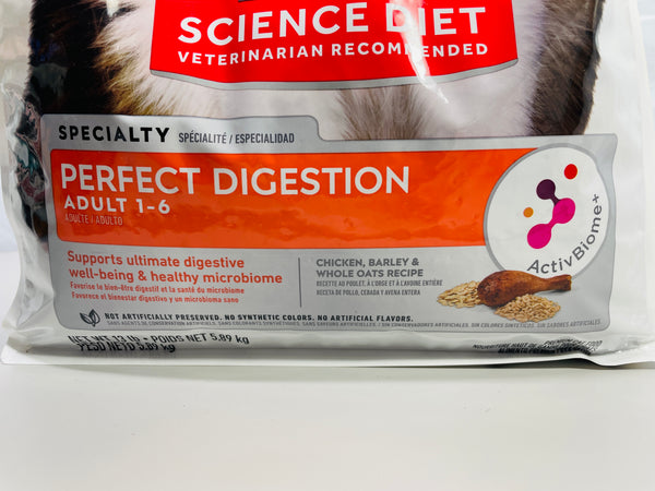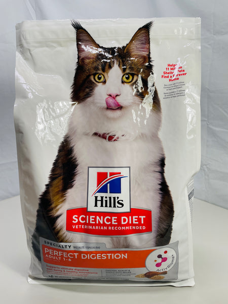 OPEN BAG PARTIALLY USED - Hill's Science Diet Perfect Digestion, Adult 1-6, Digestive Support, Dry Cat Food, Chicken, Brown Rice, & Whole Oats