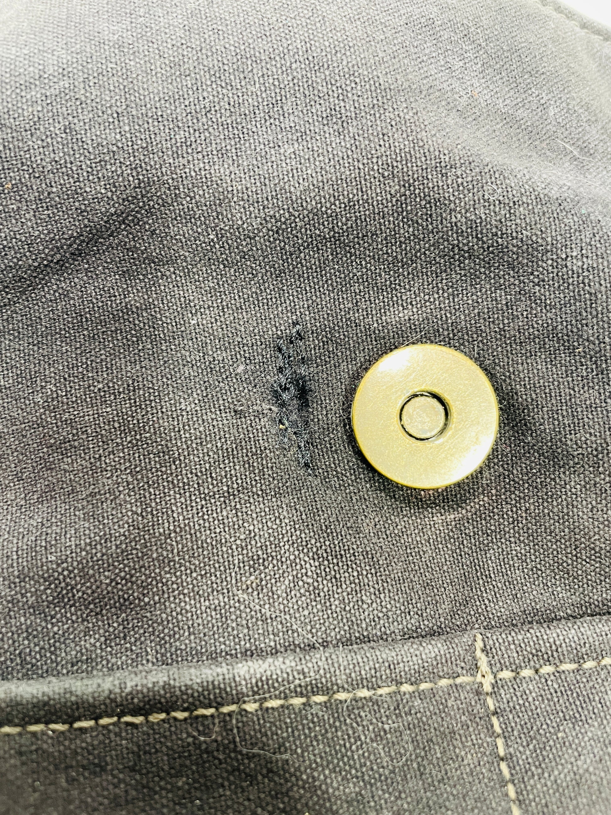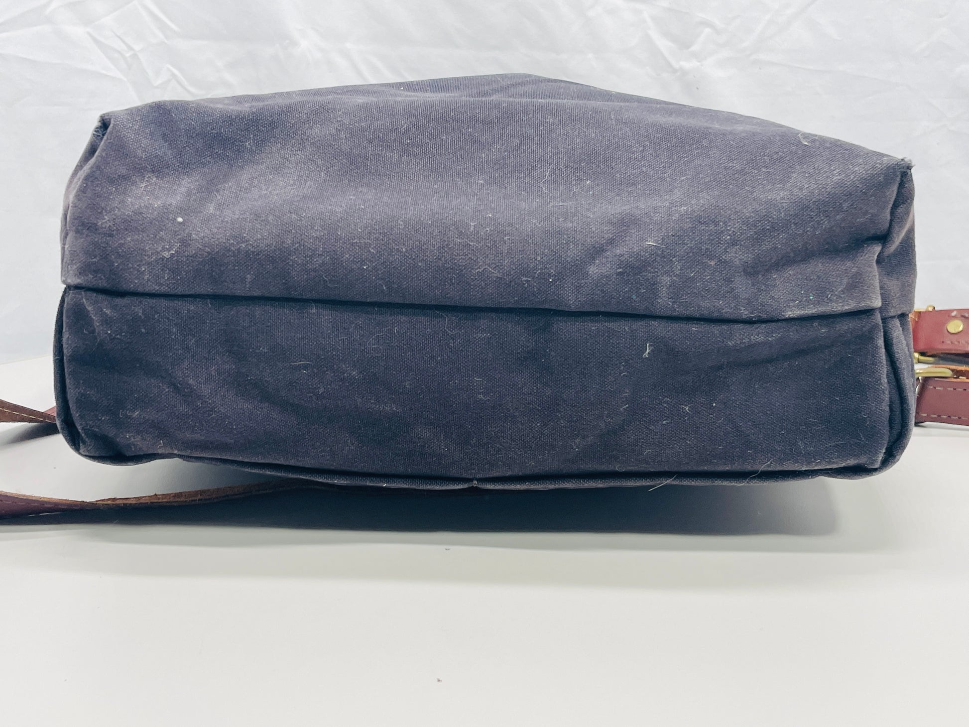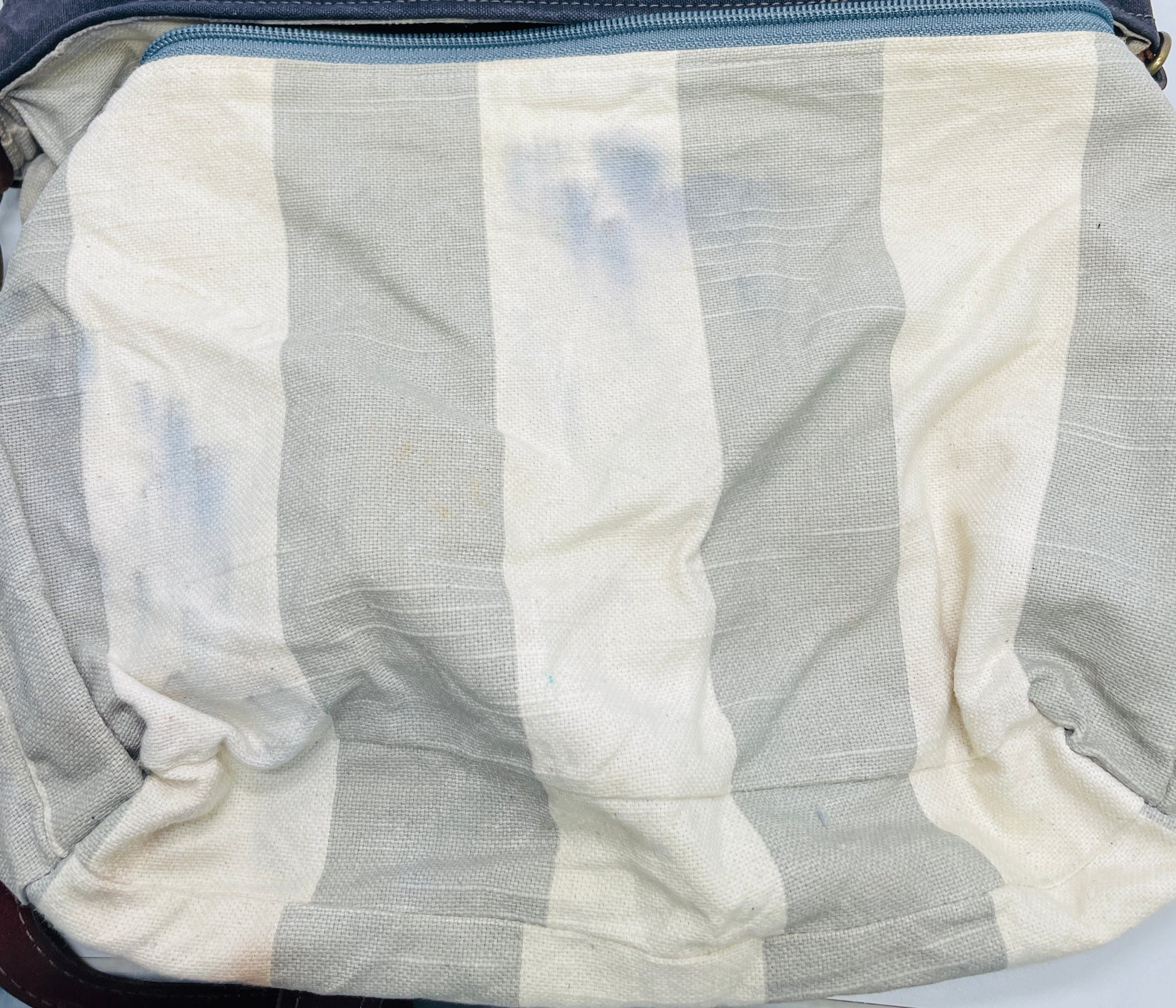 This bag is freshly Laundered and shows signs of heavy use such as wear on the outside of the bag and heavy staining on the lining.