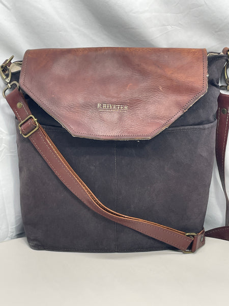 R.Riveter Original Canvas Handbag Purse Black with Leather Flap Extreme Wear