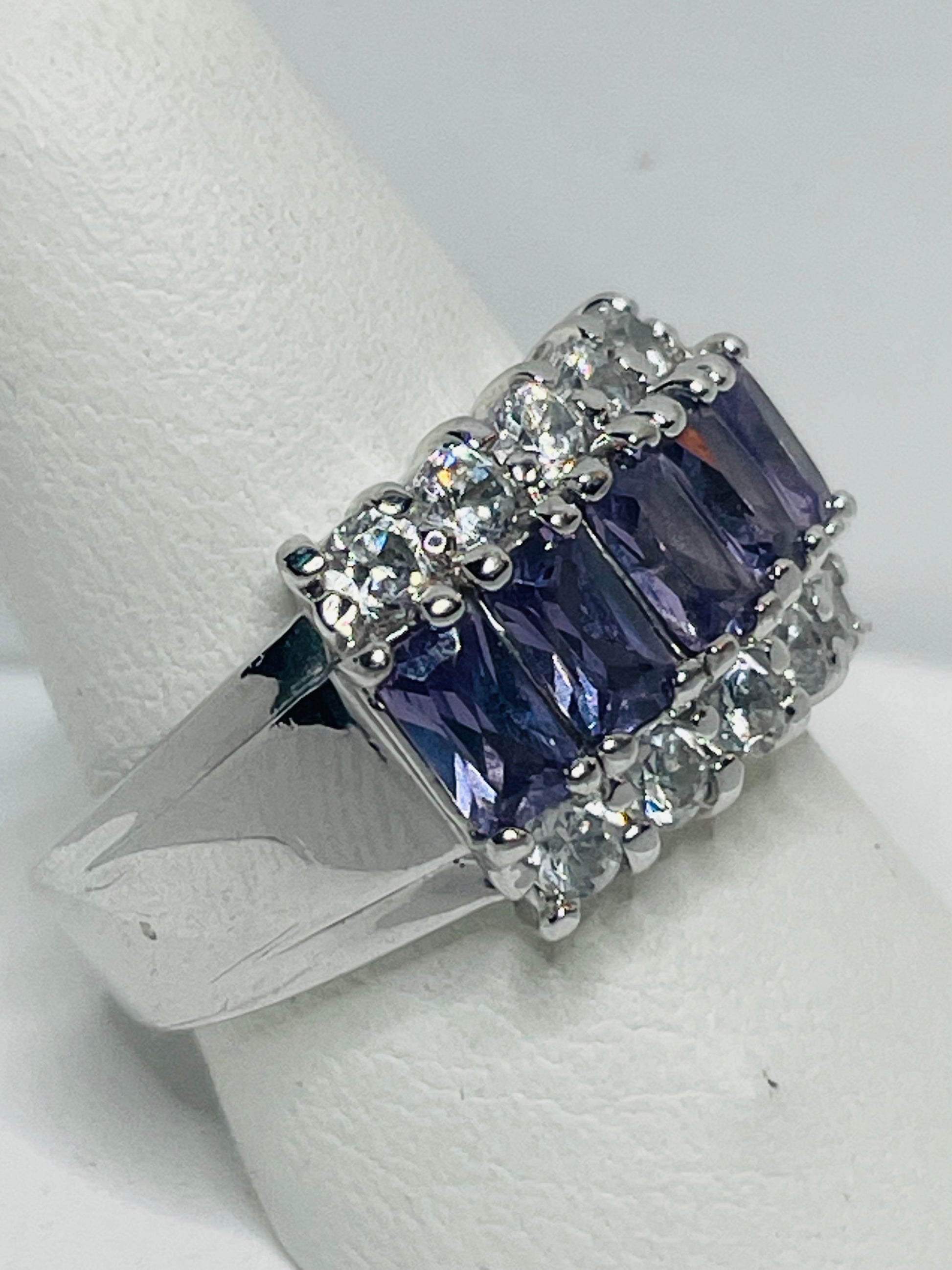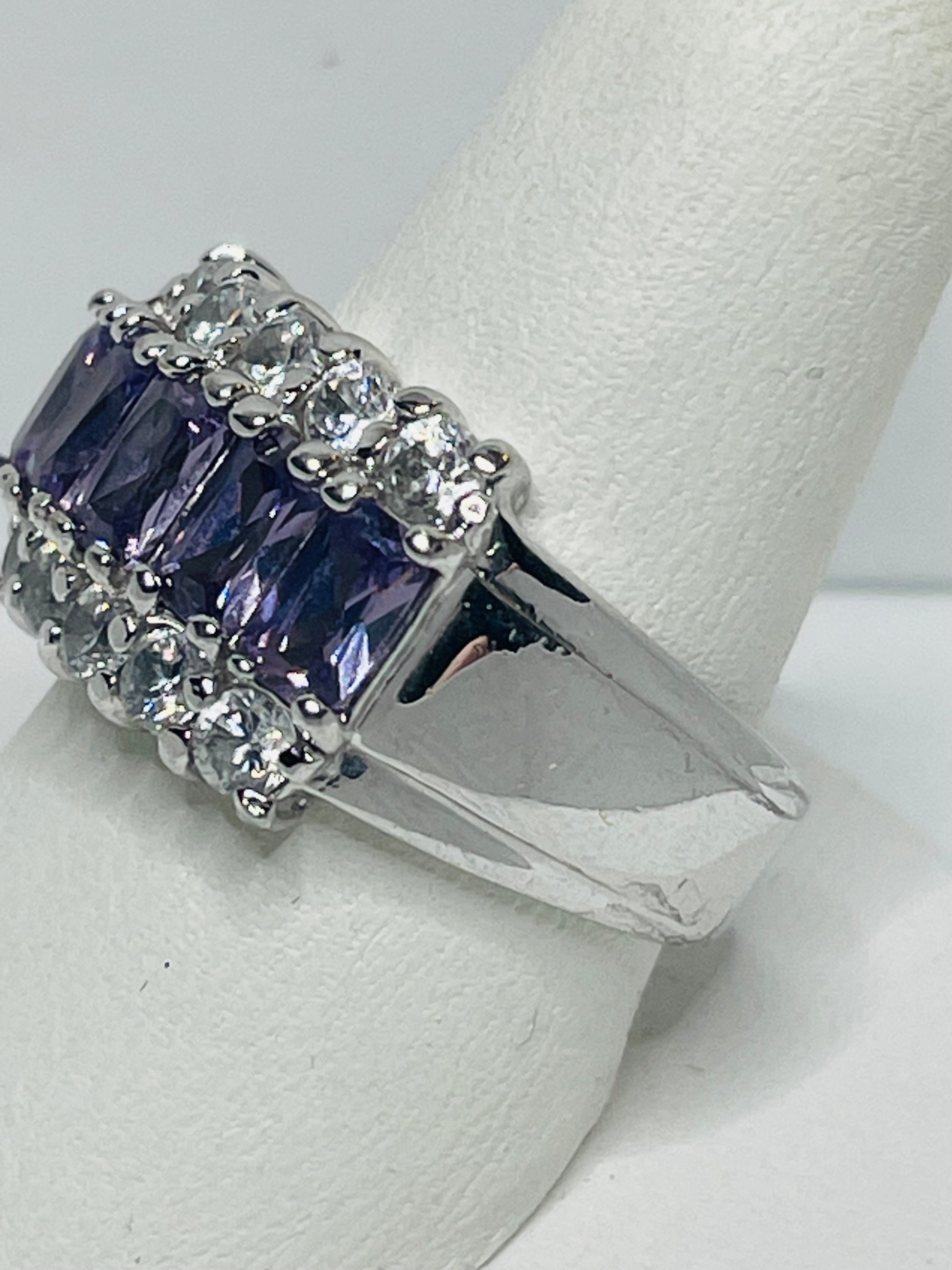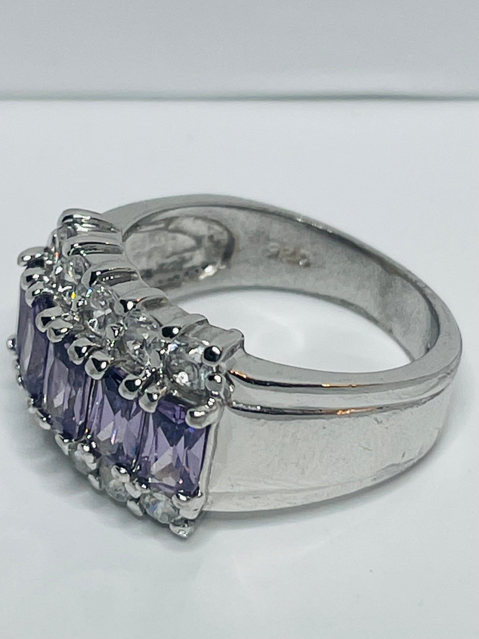 Sterling Silver RING 925 With Clear & 5 Amethyst Stones SIZE 6