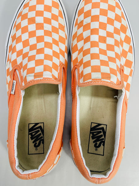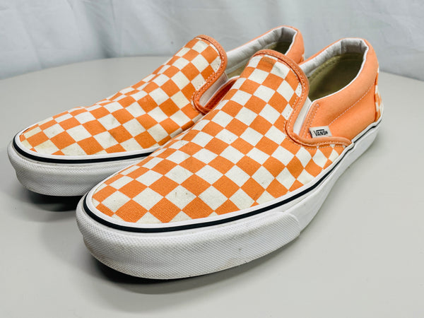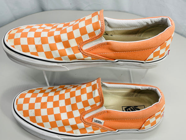 VANS Slip On Skate Shoes Orange & White Checker Mens 11