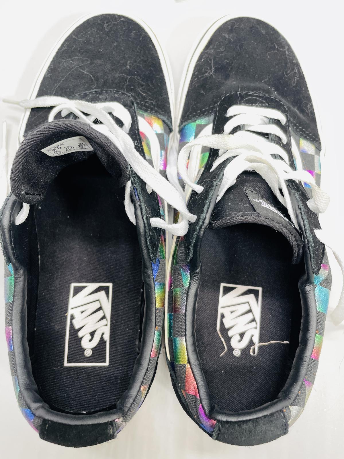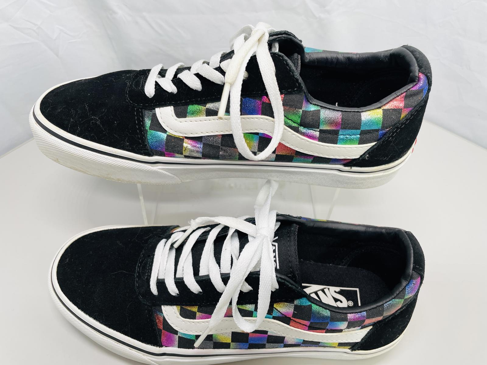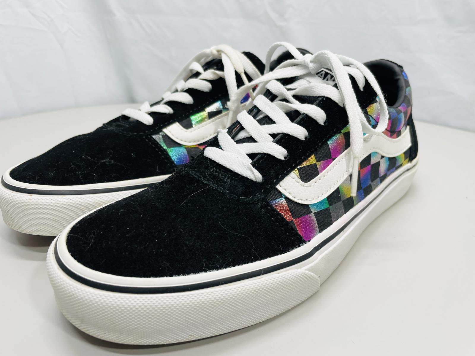 Vans Ward Iridescent Rainbow Checkerboard Shoes with suede & canvas uppers Wmns 9