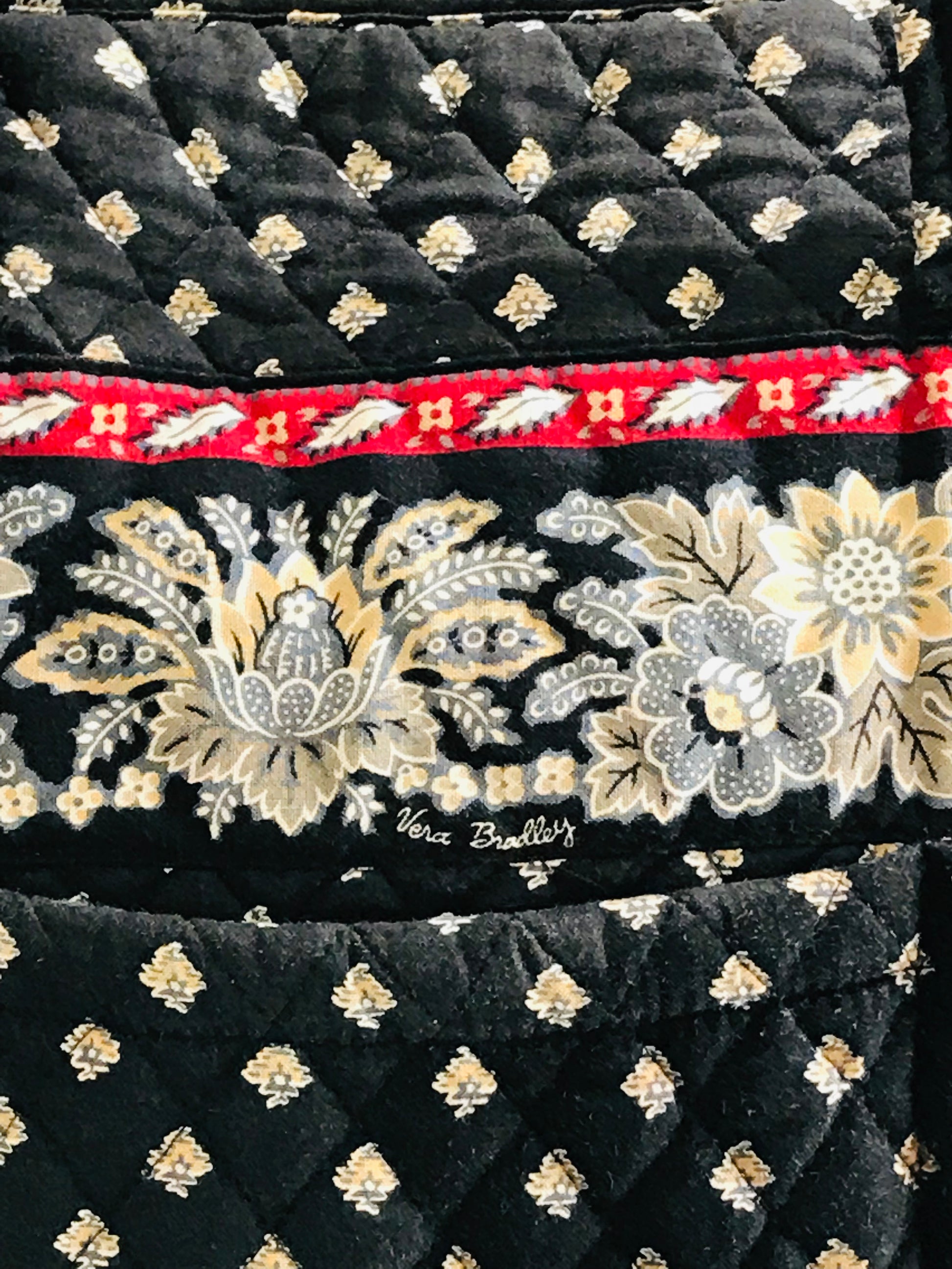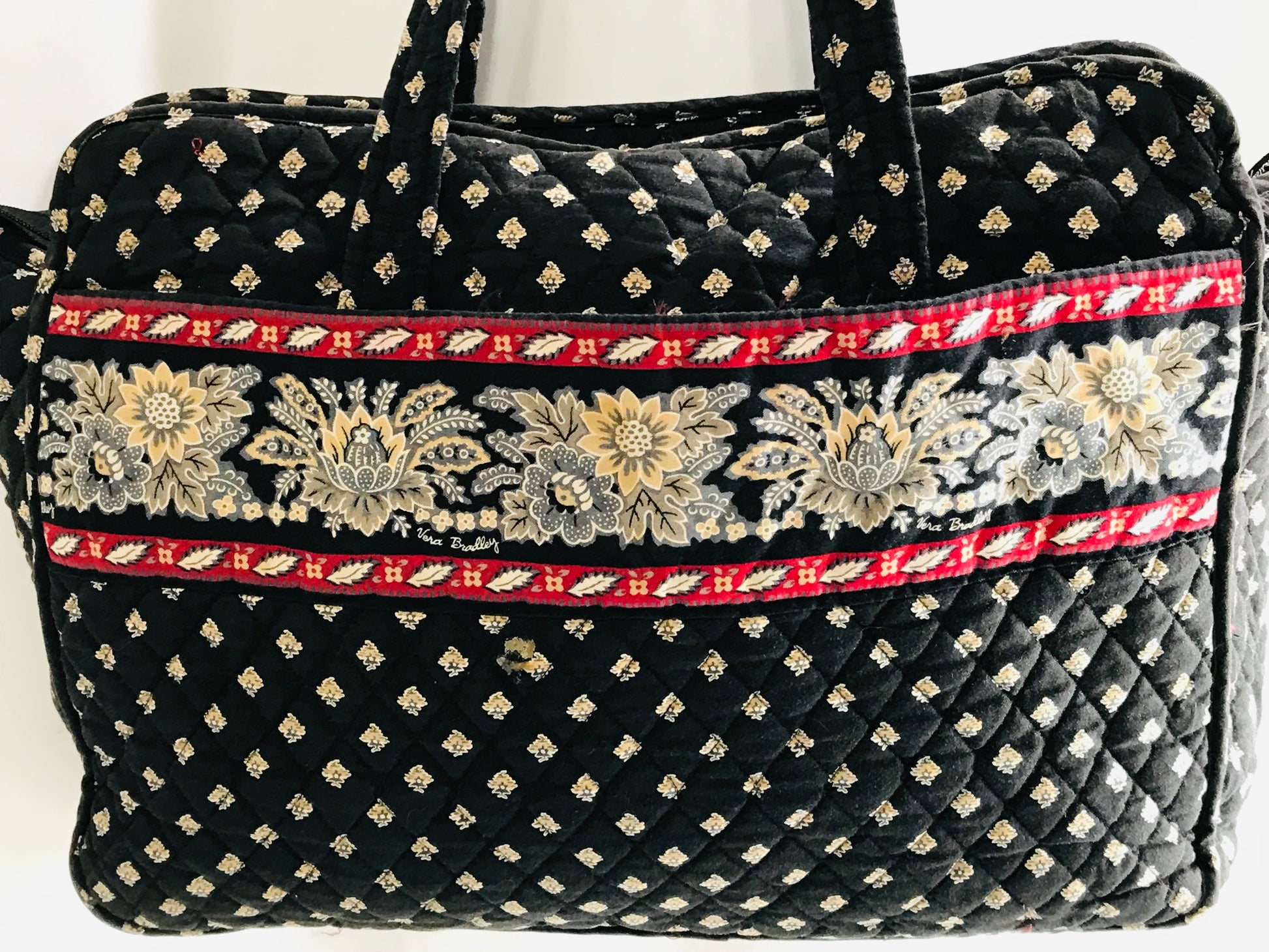Vera Bradley Quilted Tote Bag Black with Blue and Gold Flowers 16" LT STAINING