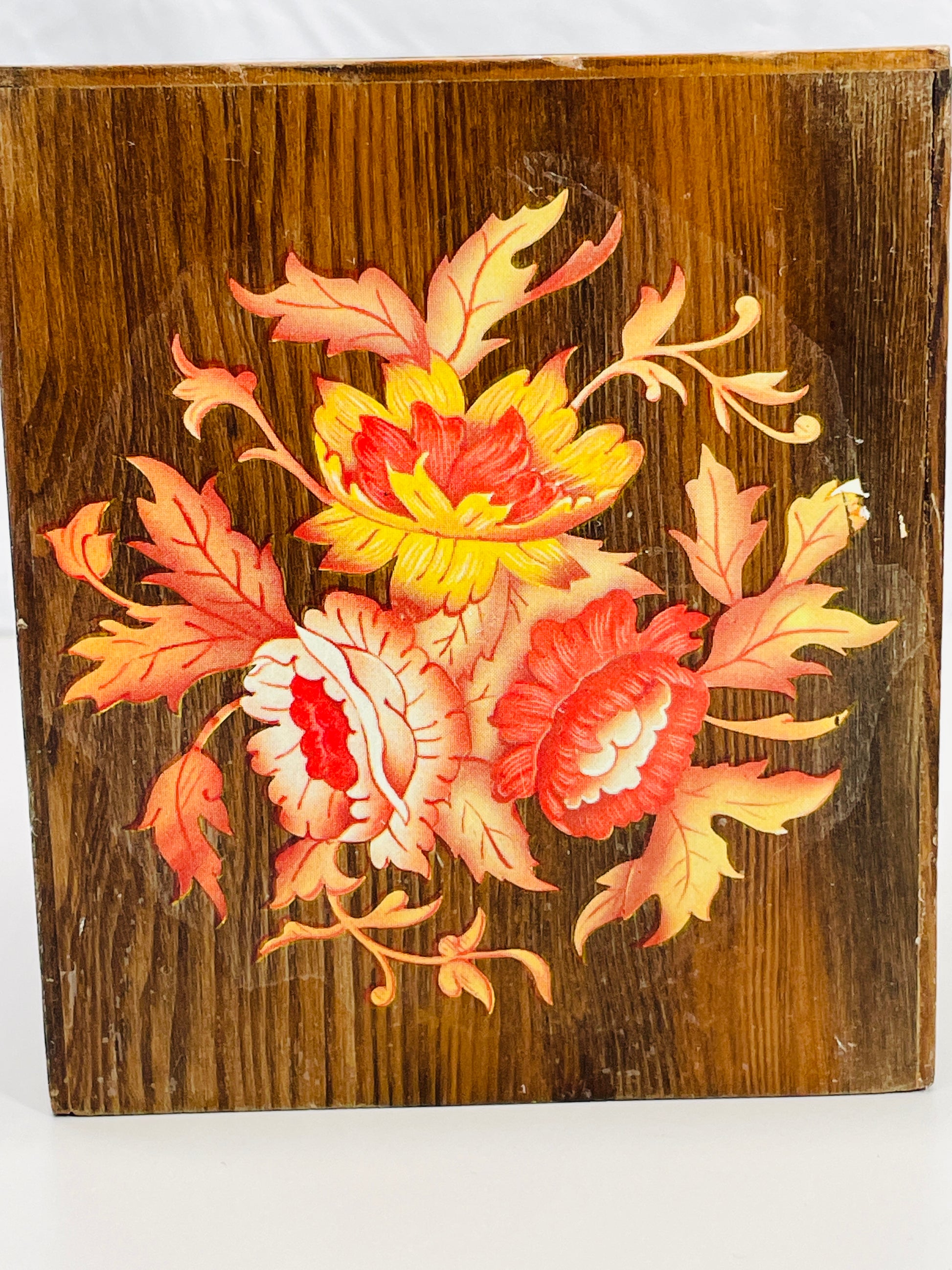 Vintage 6" Wooden Tissue Box Square with Floral Accent