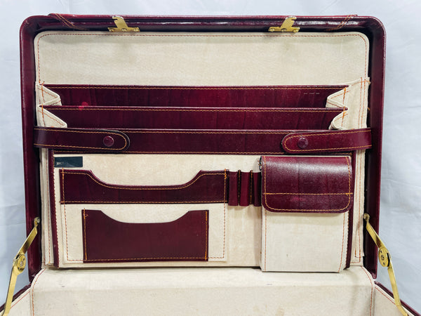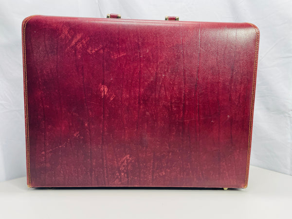 Vintage Hardshell Briefcase Red Leather with Spin Number Locks Left/Right TESTED