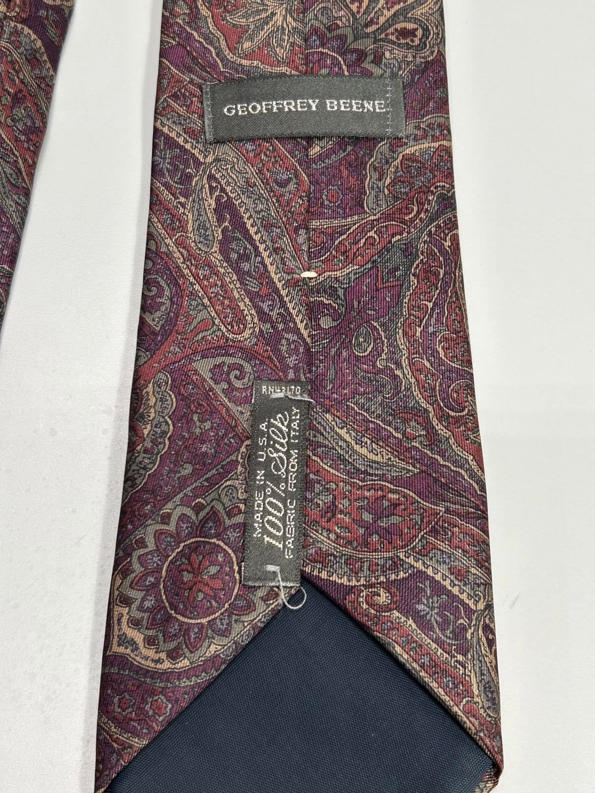 Vintage Geoffrey Beene Mens Necktie Burgundy Paisley 100% Silk