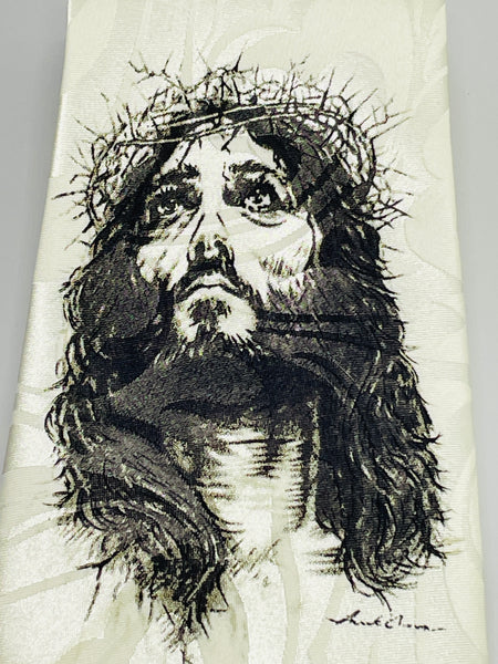 White with Black Sketch Image of Jesus wear Crown of Thorns