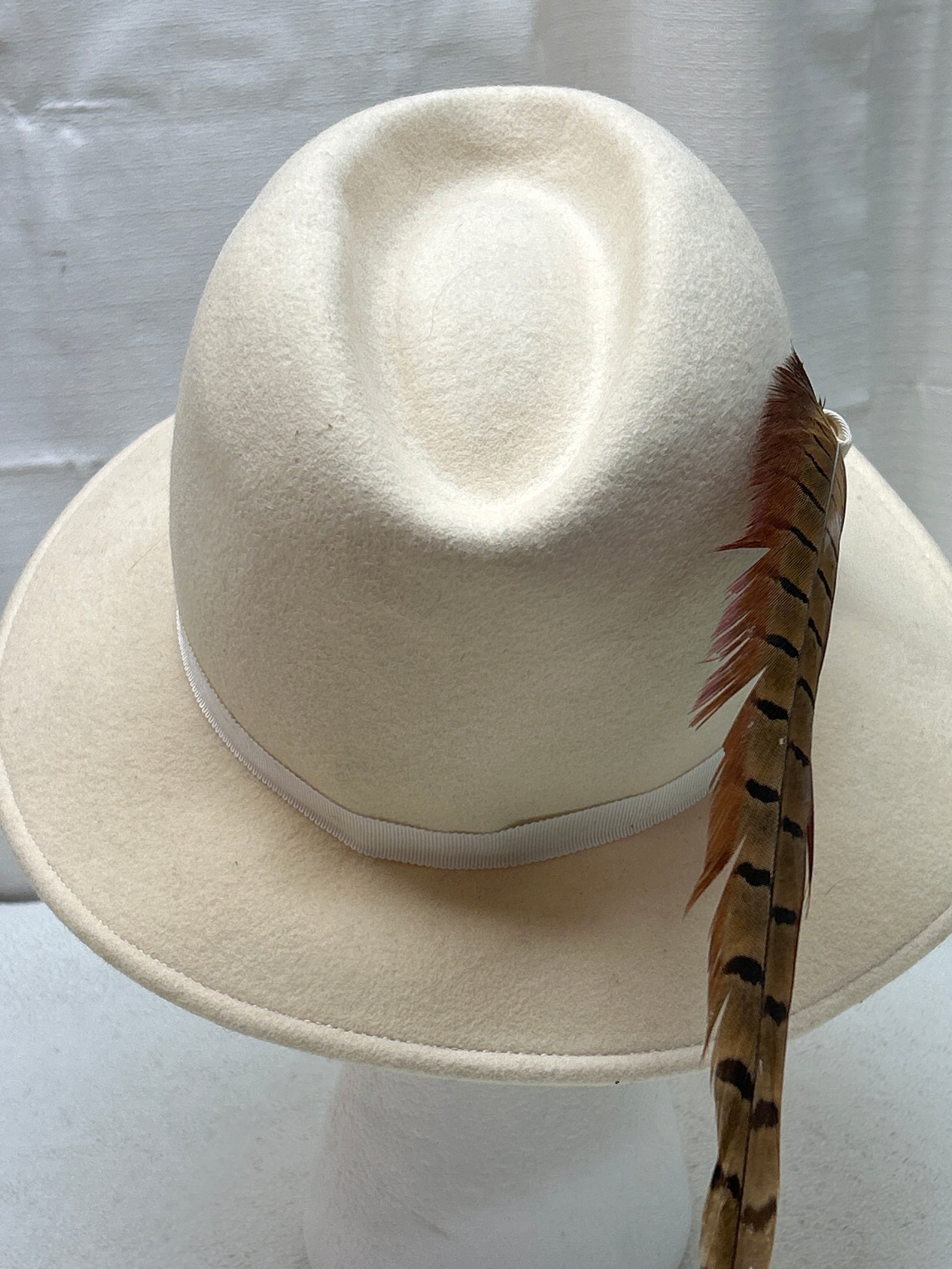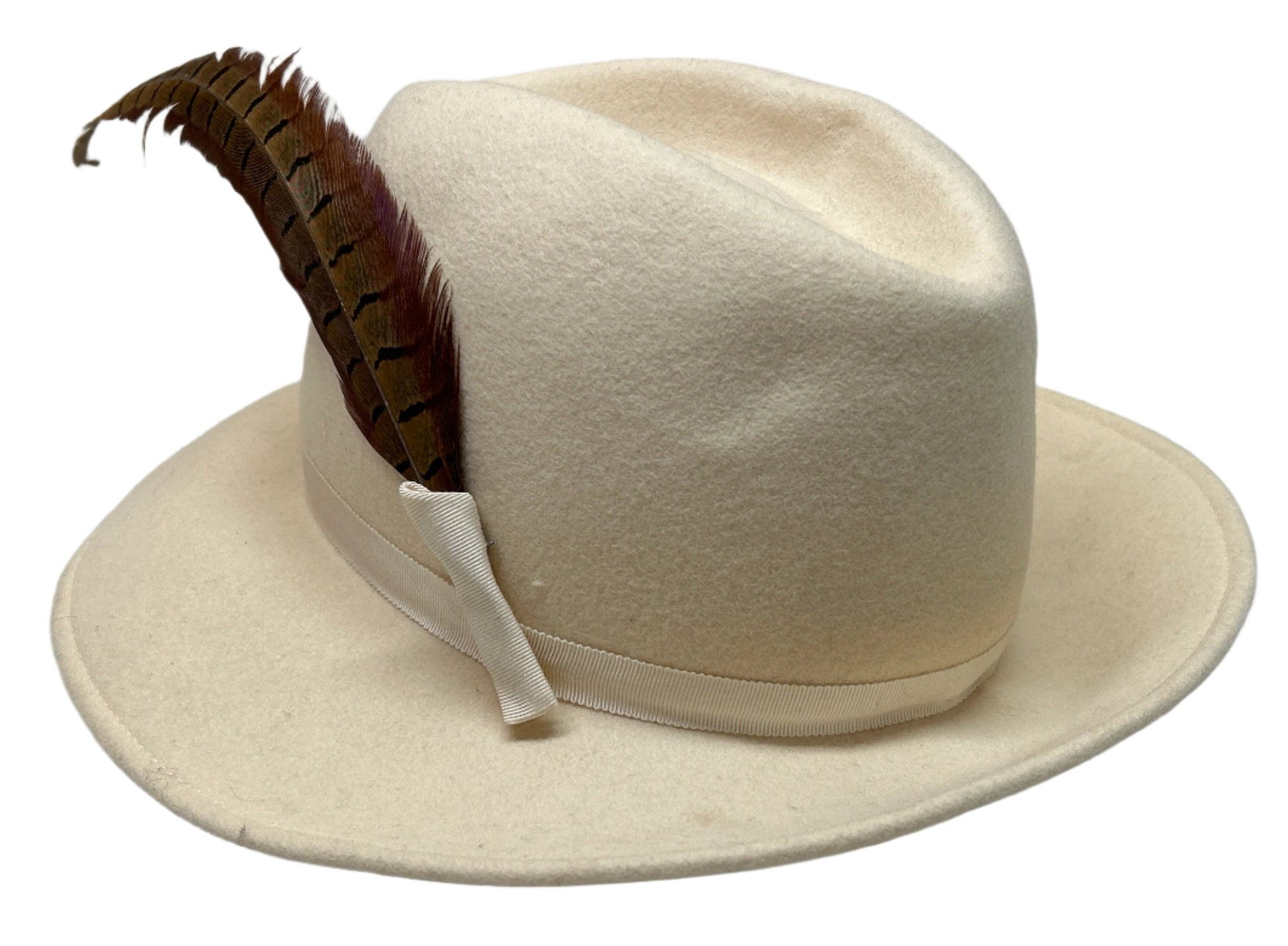 Vintage Juli Kay Chicago Doeskin Felt Brimmed Hat Ivory with Side Feather Ladies