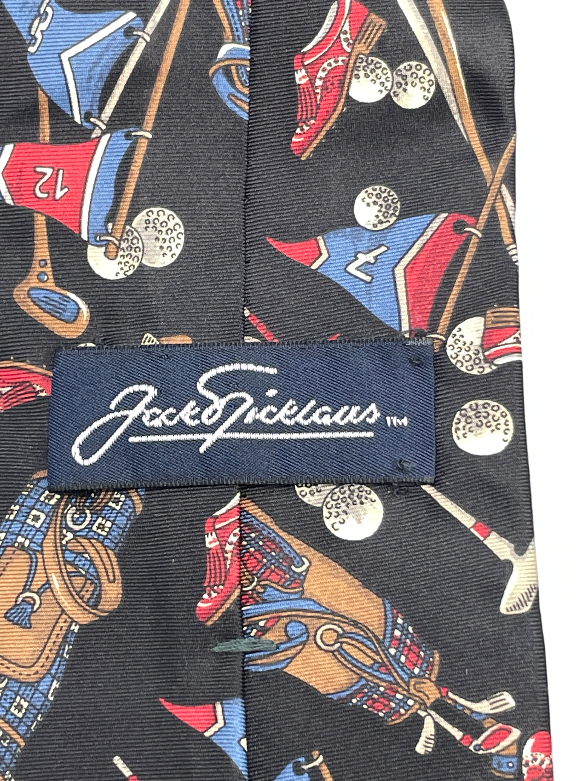 Vintage Mens Neck Tie Jack Nicklaus Black Golf Theme