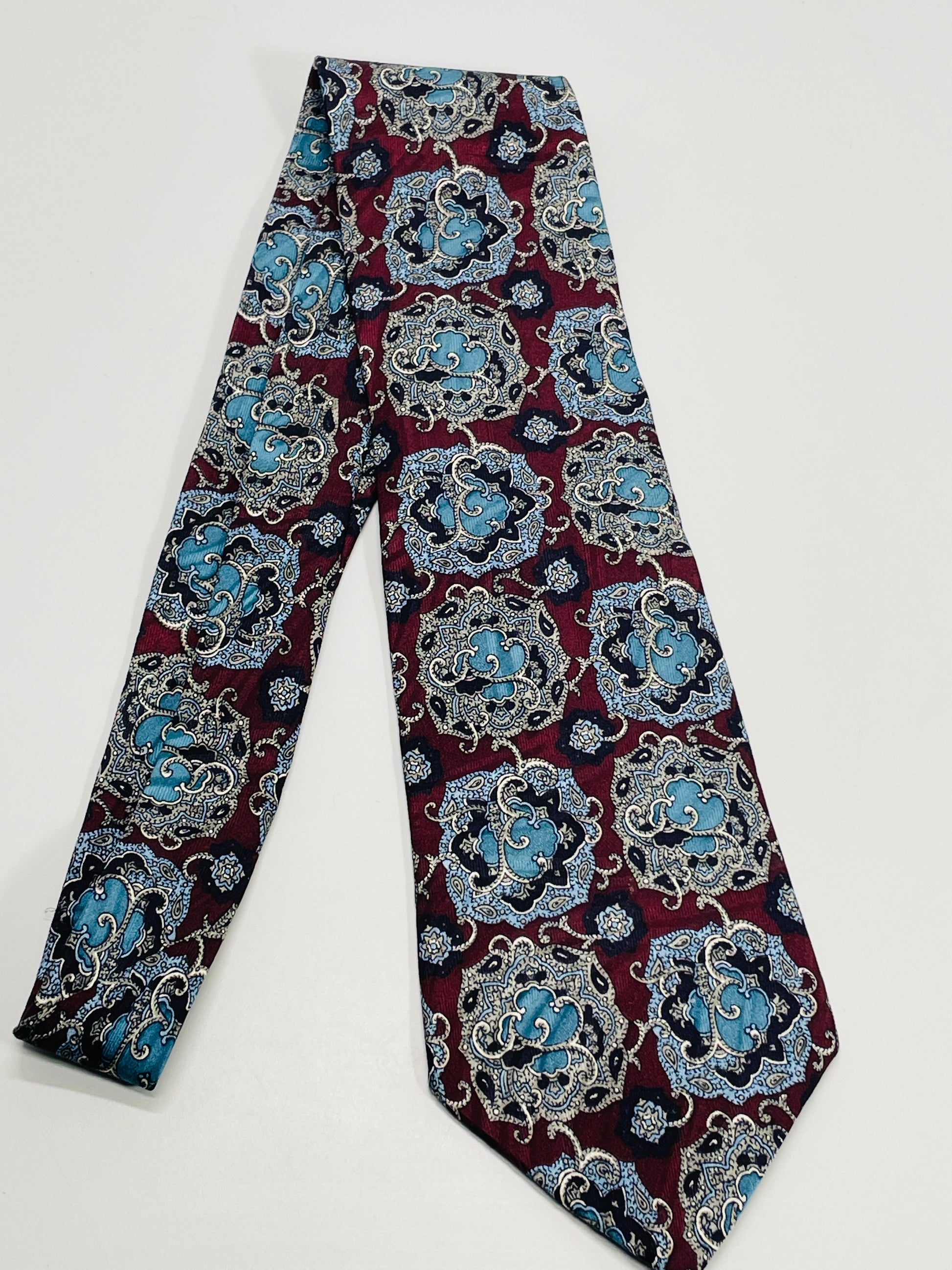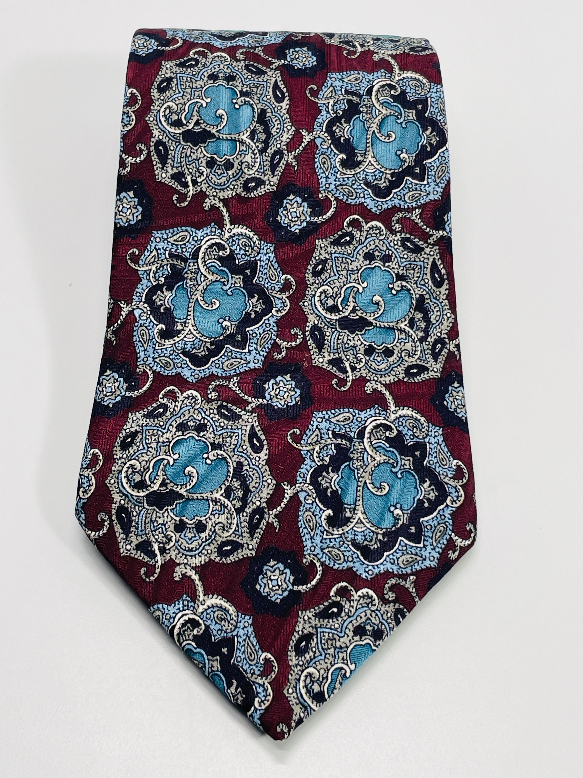 100% Silk Burgundy & Blue Floral Design