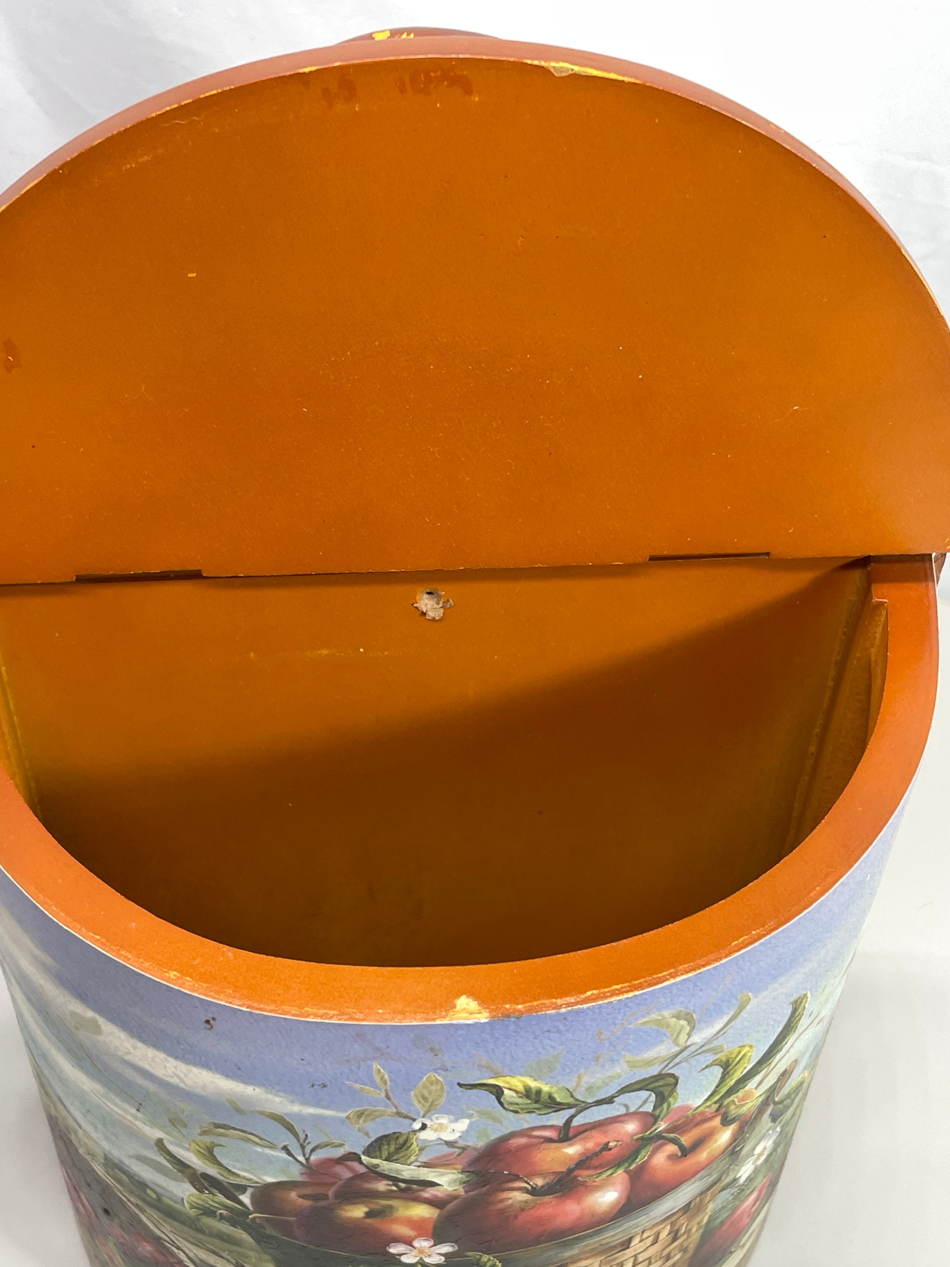 Vintage Grocery Bag Holder Wooden Rustic Style Americana Apple Image with Hinge Lid