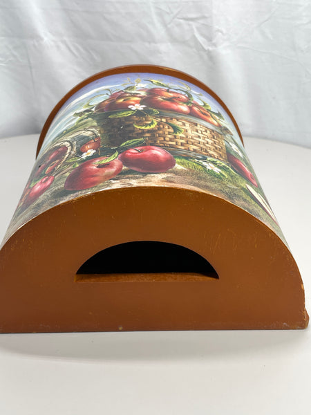 Vintage Rustic Style Americana Apple Grocery Bag Holder Wooden with Hinge Lid