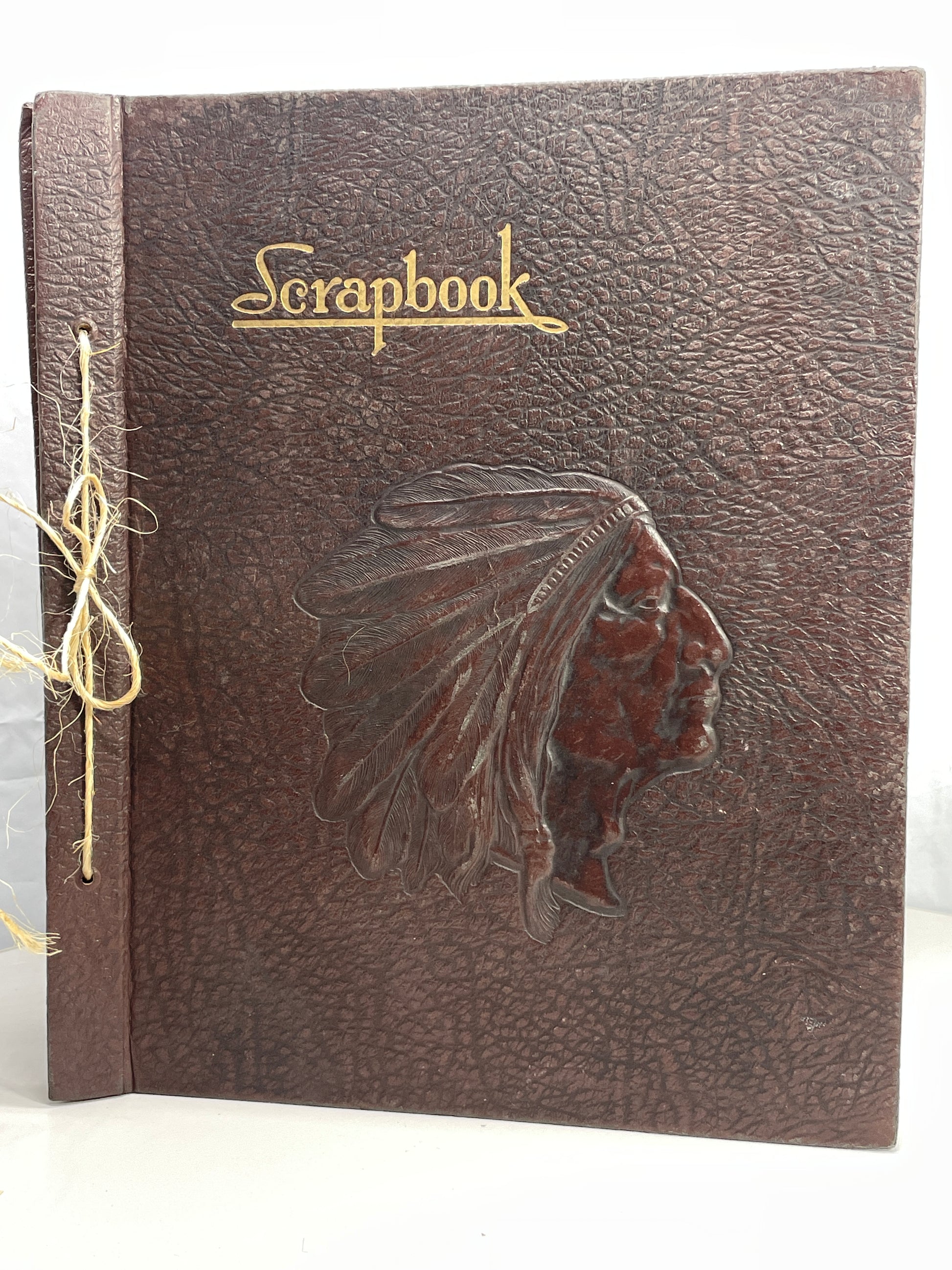 VINTAGE Scrapbook 1950's Hard Leather Bound with Textured Indian Head Embellishment