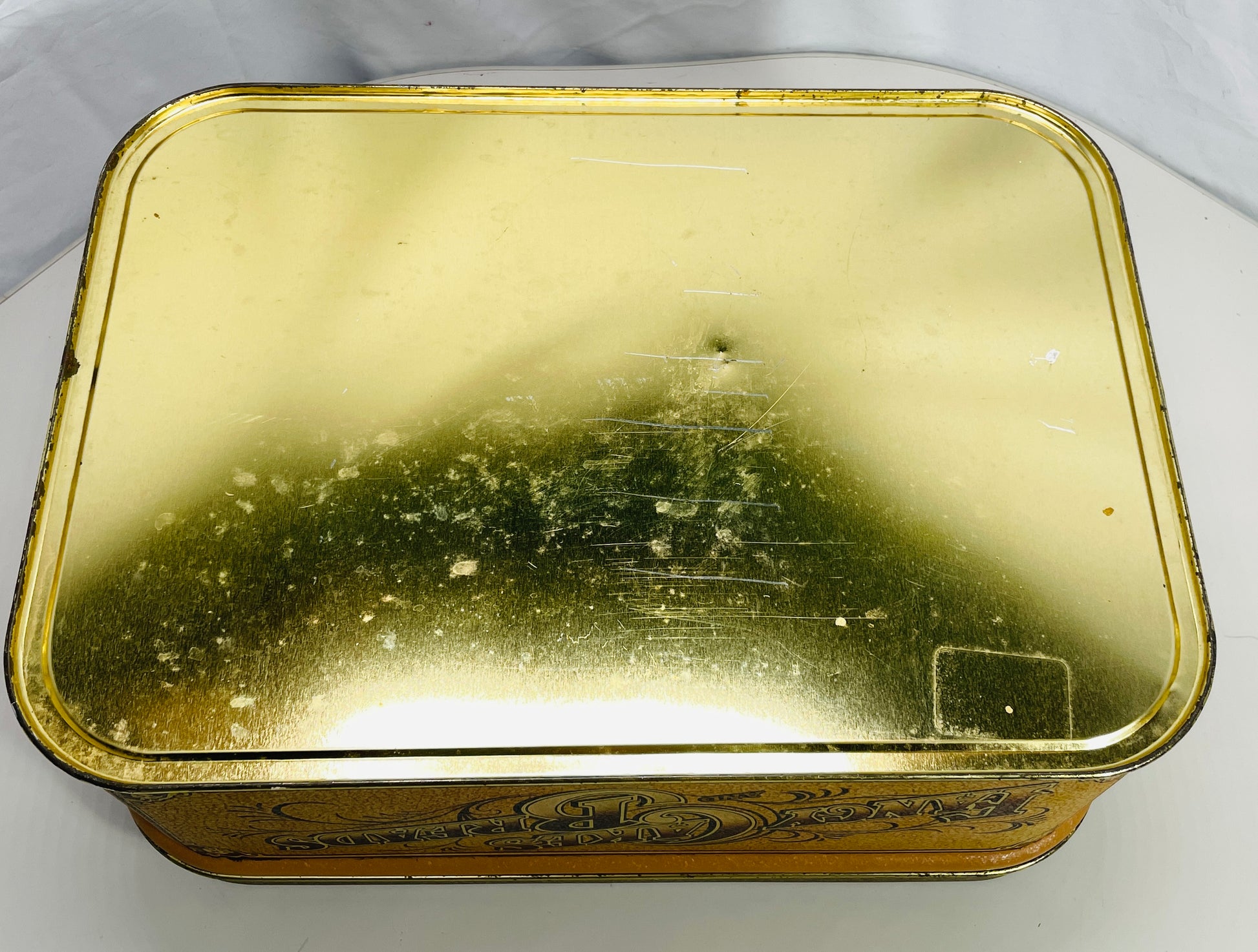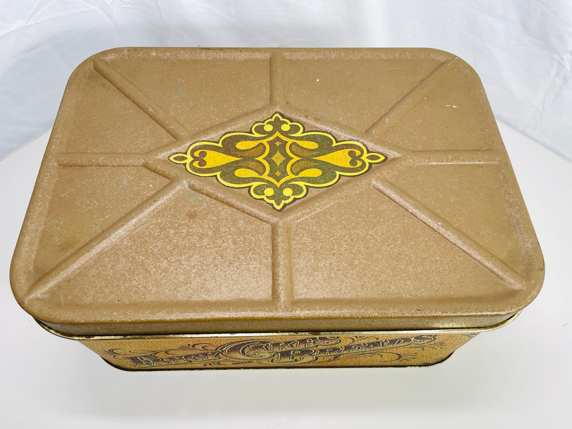 VINTAGE Tin Box FANCY CAKES and BREADS Large Tin Brown Typical Age Rusting