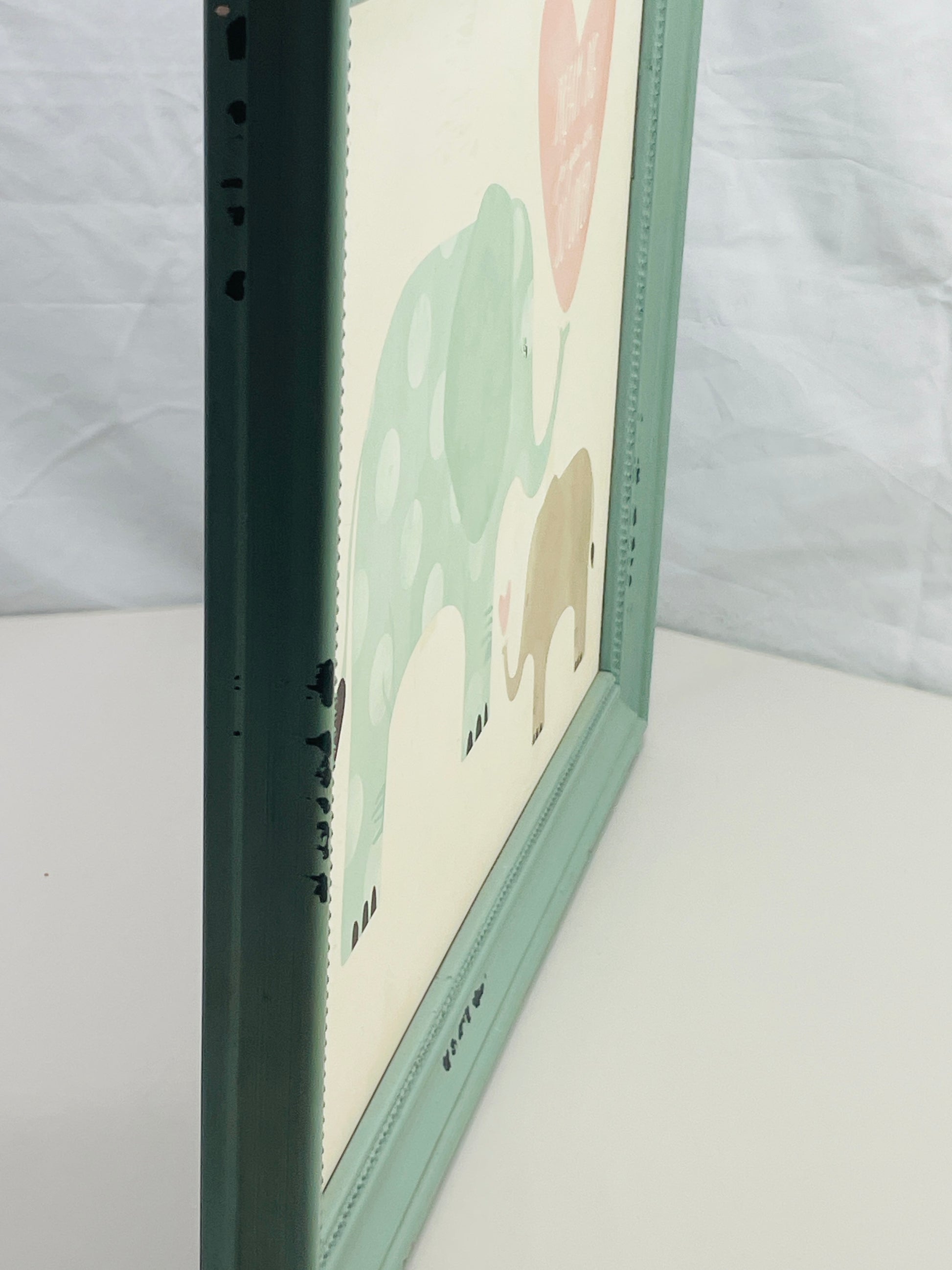 Wall Art Hobby Teal Lobby Wooden Frame with Painted Elephants Mama/Baby 16" x 13"